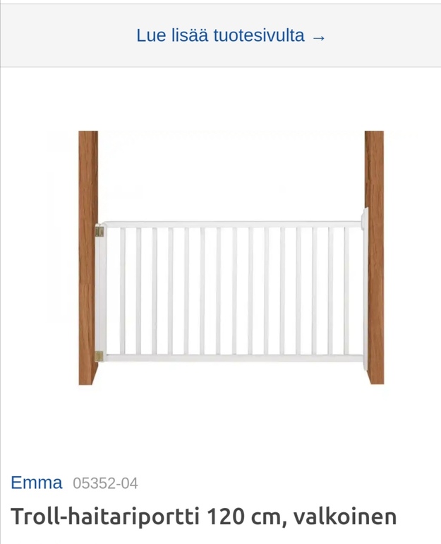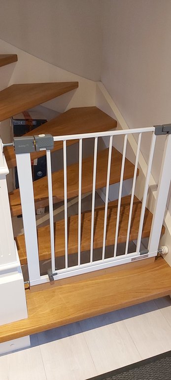 Со вторым ребенком уже покупаю самый простой деревянный заборчик troll, но у нас широкий и не стандартный лестничный проём (106 и 111 см), так что это самый удобный и дешёвый вариант, который отпиливается по нужному размеру. Малыши не умеют его открывать, старшие дети открывают. У меня даже шестилетка через него с трудом перелезает😁 стоит с обоих концов лестницы. Убираем забор, когда ребенок хорошо уже умеет сам подниматься и спускаться по лестнице, примерно в полтора-два года.