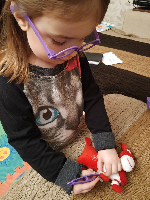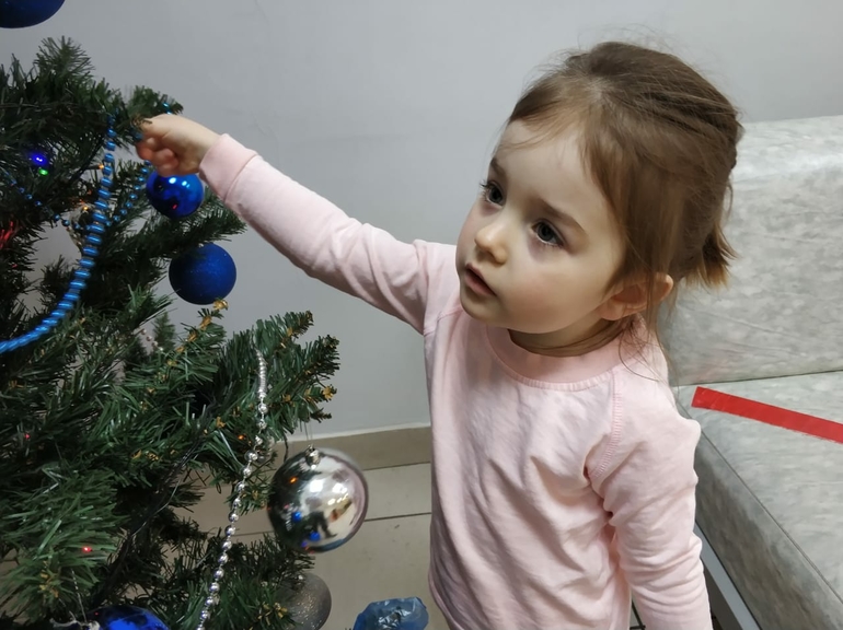 Играет в догонялки на площадке, дома в прятки любит. Обожает гостей, ждёт очень, спрашивает, кто сегодня придёт, но пока только взрослые приходят. От ёлочки, особенно имбирных печенек с неё, фанатела)