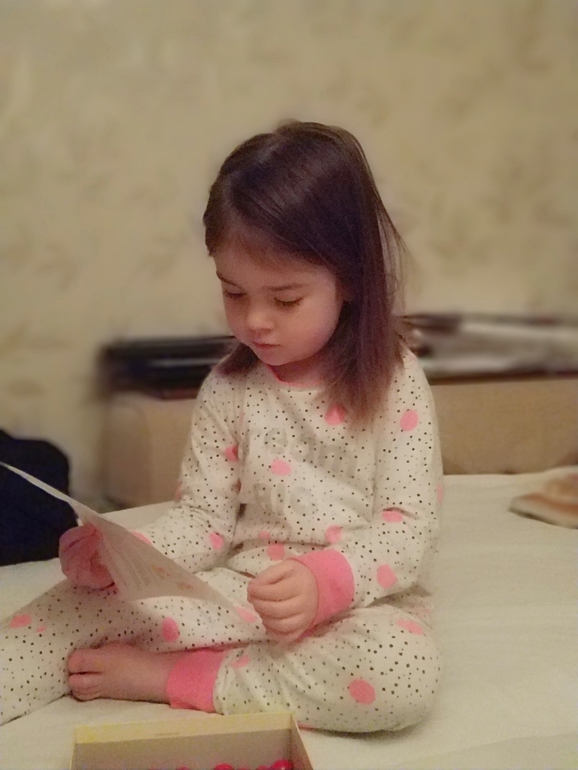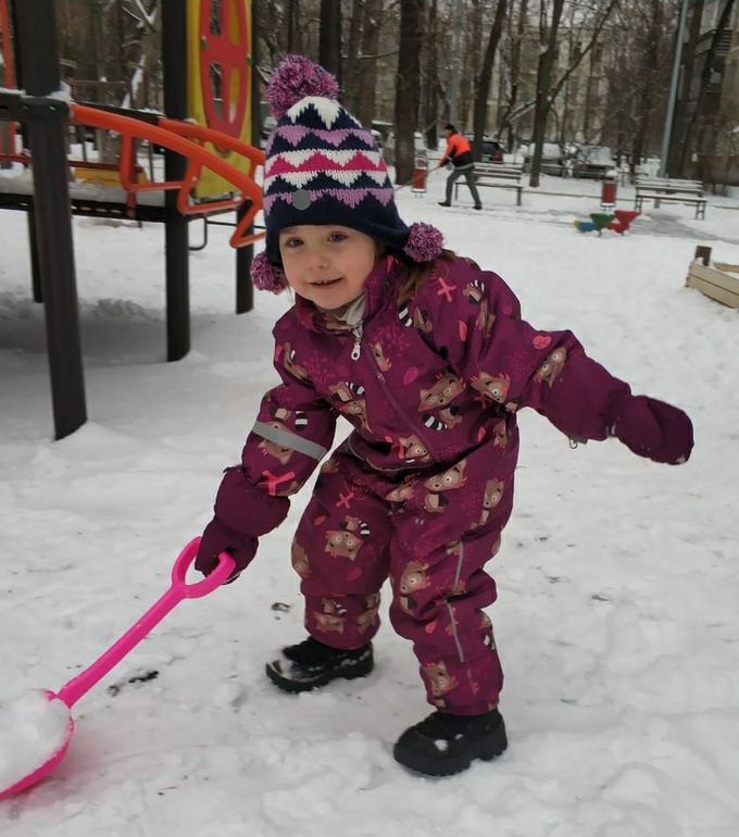В декабре Полина встала на лыжи 💪, 3 раза в неделю 10-15 мин тренировки во дворе, пока без палок. Полюбила кататься на санках с горки вместе с папой. Прыгает, отрывая обе ноги с 2,9, но правую поднимает повыше.По-прежнему часто и надолго садится "читать", листает книги и рассказывает сама себе истории. Музыкальные занятия прежние.