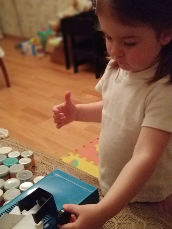 Лего, лепку, мозаику очень редко достаёт, пазлы часто. Любимая настолка в декабре была Застенчивый кролик, но сейчас на 50й карточке подостыла, последние штук 12 заходами по 3 делали раз-два в неделю. Геоборд начала осваивать. Земляничные тропинки не зашли пока, чуть поиграла и не достаёт. До 35 предметы считает безошибочно - куски пазла на 35 элементов, дальше не знаю, не просила её сосчитать большее количество чего-либо.