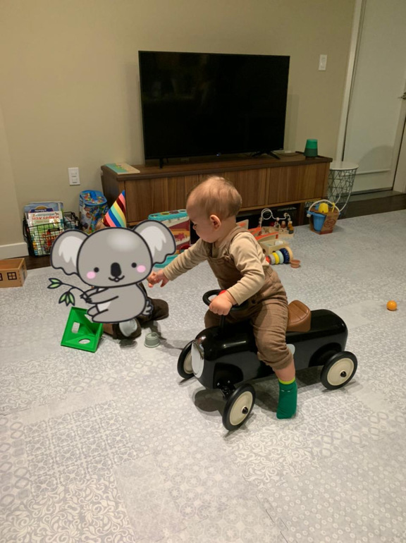 Всё так же обожает рулить. Купила ему толокар - теперь половину времени проводит на нем, рулит. Толкать и ездить не очень любит - просто сидит и крутит руль, может минут на 15 зависнуть.