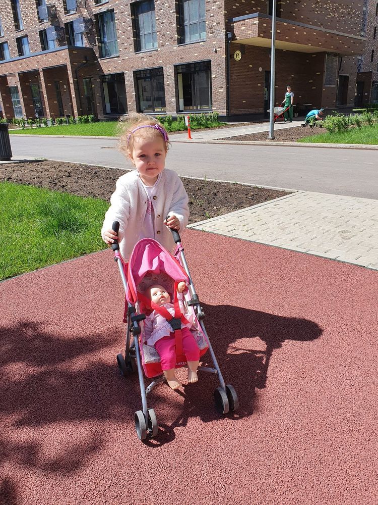 Физическое развитие. А все, как у всех - бегает, прыгает, лазает. Делает складку и пытается сесть в шпагат🤣 а еще садится в позу йога, закрывает глаза, поднимает руки и говорит "омммм". Где она это увидела, я не знаю🙈 С транспортом Софи осторожна. Опасается разгоняться.