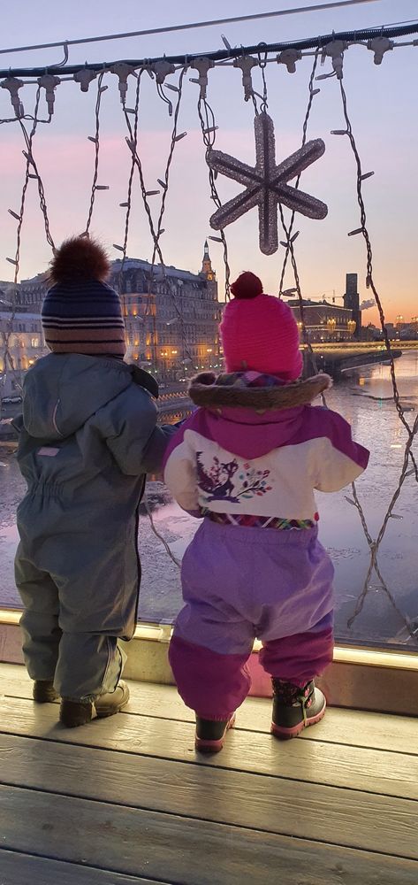 Старшая в этом возрасте не подходила и близко к Деду Морозу и аниматорам в костюмах, зато Софи не испугалась)))