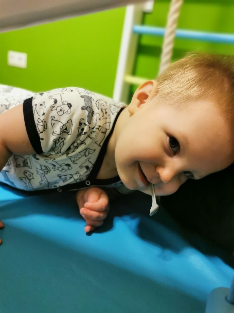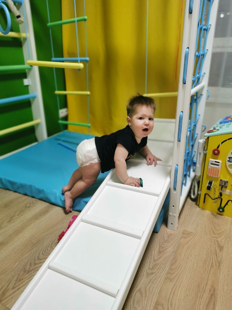 Из плюсов ещё этого месяца - партизан почти полностью ушёл, гоняет на четвереньках (и до процедур ползал, но может они, конечно, поспособствовали).