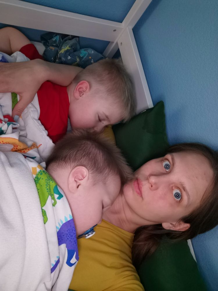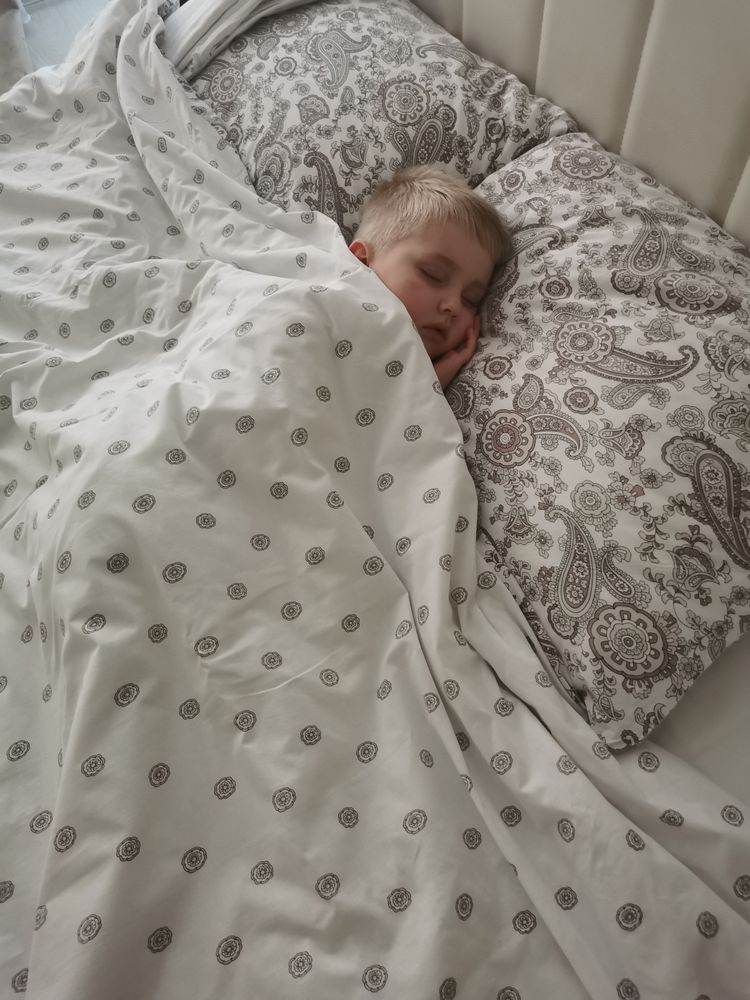 Спят оба плохо. Обычно уже к полуночи обоих забираем к себе. Лев кричит ночами, зовёт меня. Глеб весь чешется и, если ручки не придерживаться, то просыпается и плачет.