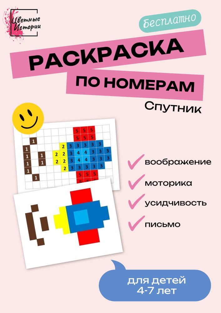 Бесплатная раскраска по номерам «Космический спутник» для детей — развивающ