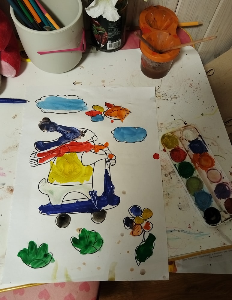 Какая умничка! А у нас 5 минут тишины и с ног до головы в красках оба сидя, ещё стол, стулья, стены, пол - короче красок больше у нас нет