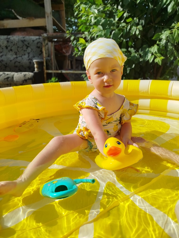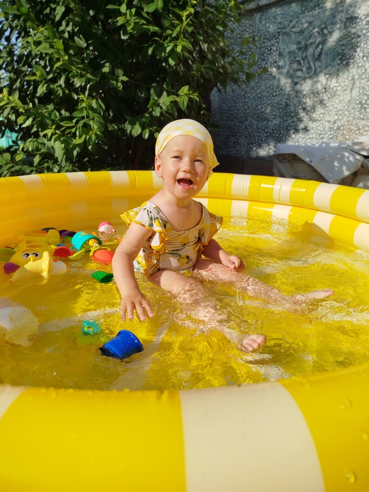 ДругоеВ Омске эту неделю стоит жара более 30°☀️ Купили малышке бассейн небольшой, купается там с друзьями малышариками (детками из нашей компании, с которыми гуляют)! 💛