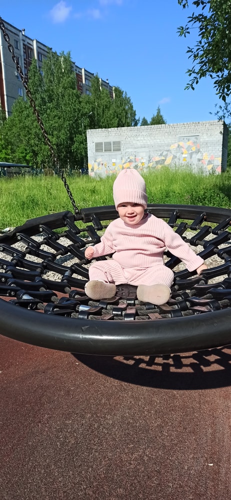 Идем на прогулкуТеперь мы просыпаемся в 5 утра 🙈 это ужас какой то))) не могу пока что его сдвинуть на попозже... В 8 утра ходим гулять) народу нет на площадке, всё, как любит моя прекрасная девочка)) ходили сегодня ещё уточек кормить)