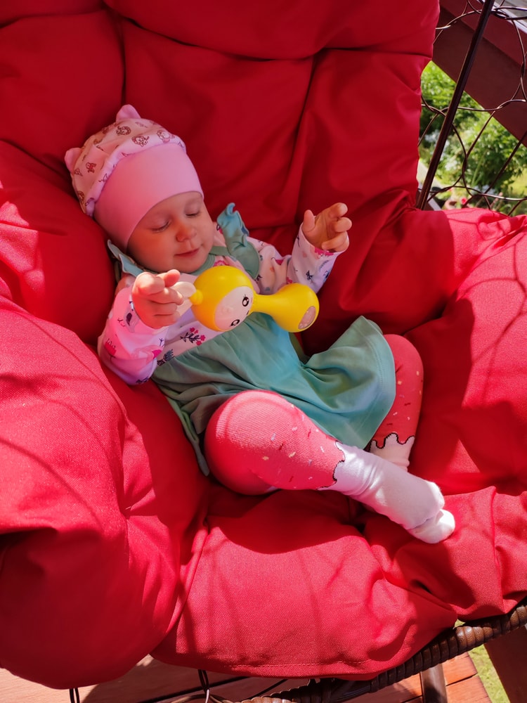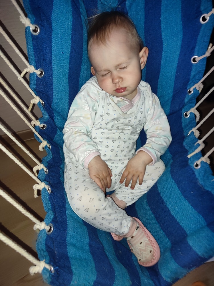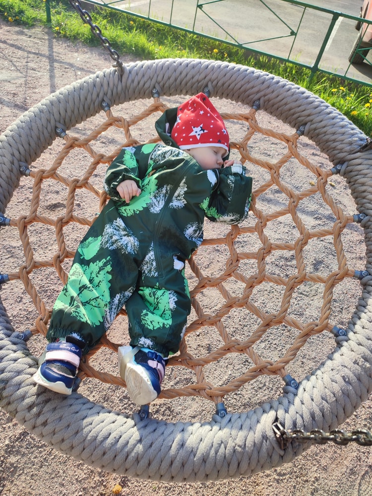 Алена обожает качели. На прогулке бежит сразу к качелям и частенько в них укачивается, засыпает)