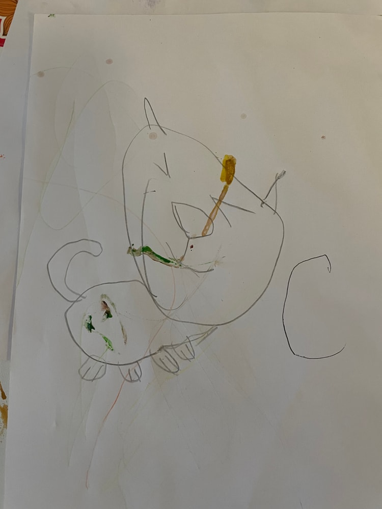 ViksikKash , я просто не ожидала, что она уже может нарисовать еще и любую кошку. Уж очень любит кошек.