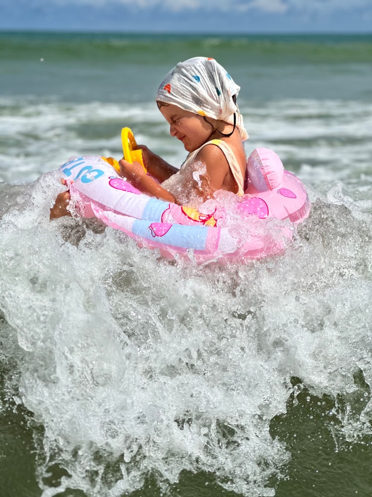 А ещё мы слетали на море. Первый раз. 10 часов полета, 25 дней отдыха. Песок в волосах, солёные щёки, ныряние в море и в бассейне и «ещёёё!». Она запомнила, как на пляже бегали крабы, как волны щекотали ноги, затягивали в море и накрывали с головой, и как она научилась есть арбуз ложкой. И теперь каждый день спрашивает: “А когда мы опять полетим на море?”