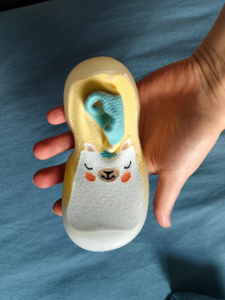 Моя ходила босиком или в обычных носках. Ваши выглядят жарковато.
