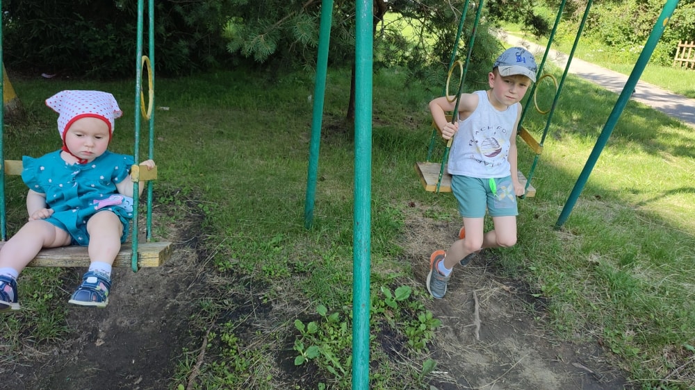 Еще Алена любит играть с братом в мяч, "гоняют футбол")