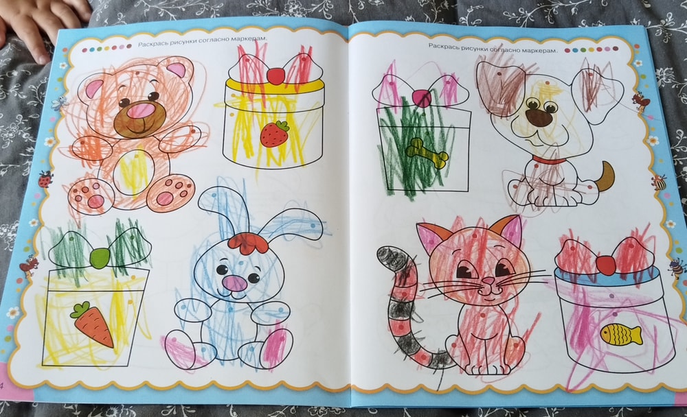Я продолжаю рубрику «Творческий час». С наступлением лета наши интересы немного изменились. Дочь по-прежнему любит рисовать, и сейчас наши любимые занятия — раскраски по точкам или другим значкам. Раньше мы часто использовали раскраски с цветным контуром, а теперь усложняем задачу.