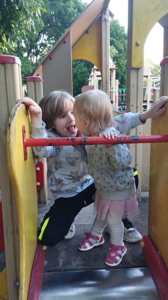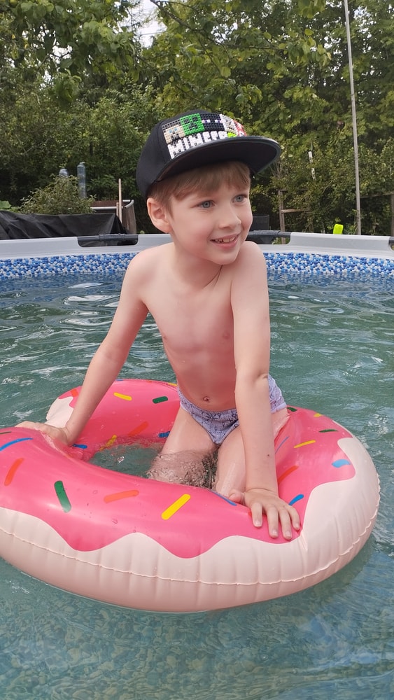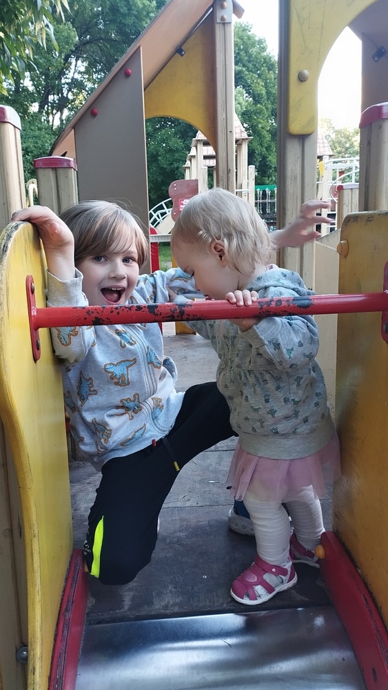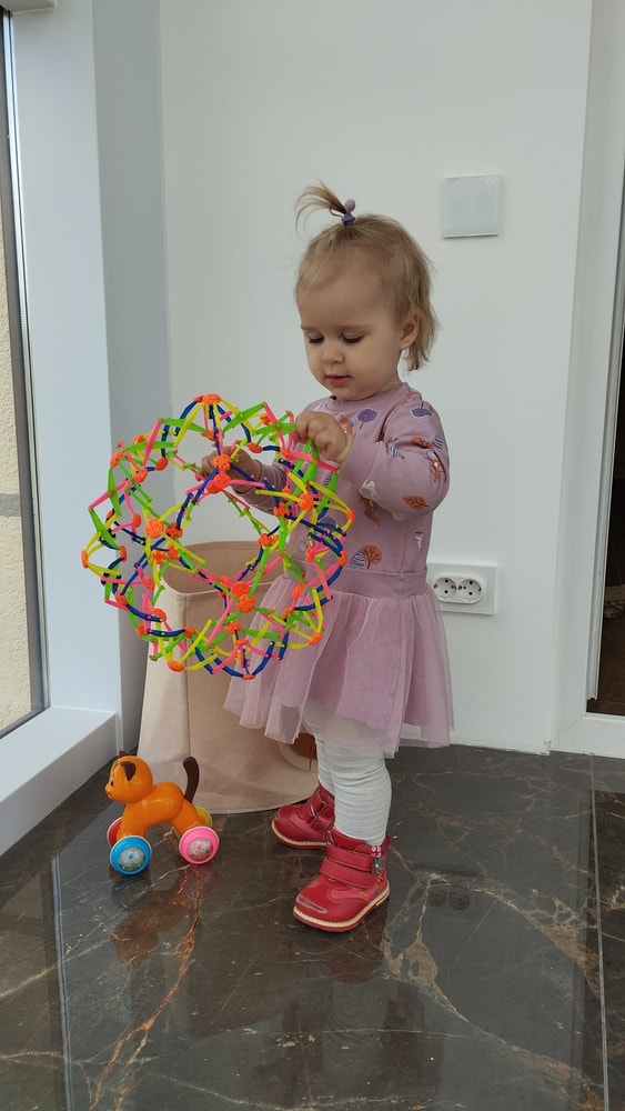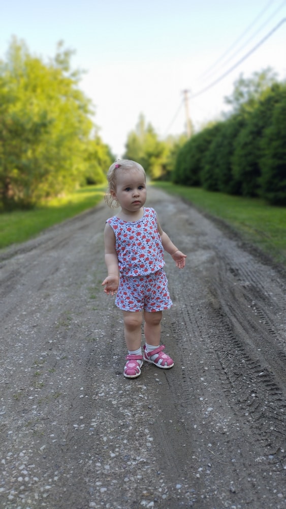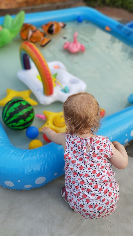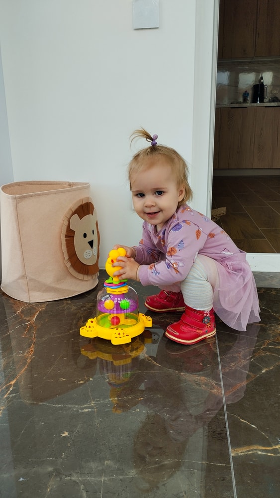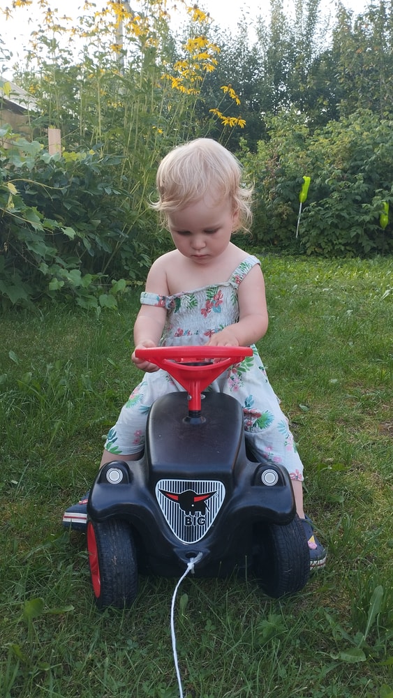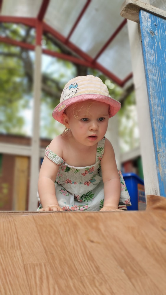 В жару ходили без памперсов, в трусиках, сложно это) она писается каждые 20 минут, это конвейер, переодеть, простирнуть и повесить. Хорошо , что в жару сохнет быстро. Собрали бассейн, старший рад, и с него не вылезает. Ви сначала испугалась , потом у соседей увидела, как купают малыша в бассейне и тоже захотела, теперь тоже на раз-два-три окунаю в большой бассейн и там ее юлозю)) Вообще стала тянутся к детям за общением. Как то контактирует с маленьким соседом ( ему 9 месяцев), смотрит на него, берет у него соску, обратно вставляет в рот, отнимает что у него в руках. К детям постарше бежит со всех ног, трогает, дает камешки. О, эти камешки. Глаз да глаз нужен. У нее вечно камни во рту. Не знаю сколько раз за прогулку я ору "плюнь" 😄 из слов, всё то же, папа , ам (кушать), па (упало) на птиц показывает пальцем и говорит " пс" и всё.) ещё говорит ай я яй, держит в ладошках нижнюю часть лица и качается в стороны (если что то уронит, упадёт). челка вечно лезет в глаза , заколки и резинки держаться на голове минуты 3, потом либо теряются, либо во рту обнаруживаю )) так что большую половину времени ходит растрепой. Нашла одежду сына, что не успели отдать, одеваю ей, так что иногда в образе пацанки бегает)