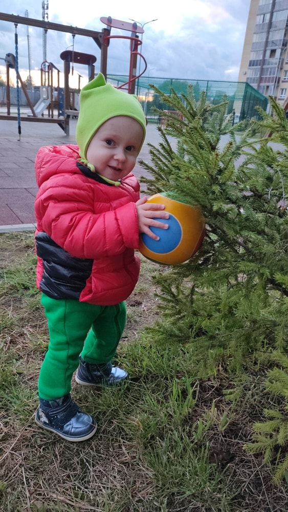 Любит игрушки, катает машинки, бросает мяч. Пирамидки и сортеры не интересны, если только кидать колечки. Вообще, любит брякать по полу или столу предметами, слушать звук. Особенно если предмет вращается. Любит кинуть и смотреть.