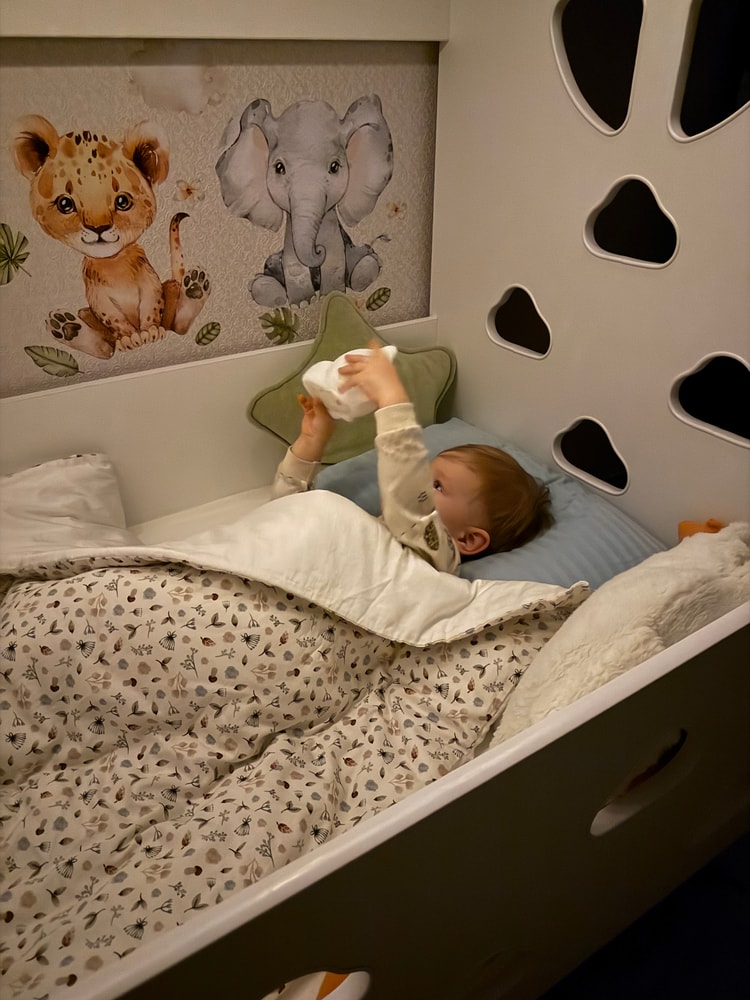 У нас детская приставная кровать 80*160. Как раз с 2х лет где-то и поставили. Сейчас ребёнку 3,1. Засыпает с нами, мы перекладываем в его кровать, потом в ночи может снова к нам переползти.