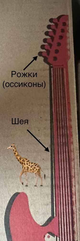 На коробке увидел изображение гитары. Говорит: похоже на жирафа. И сам сразу объяснил, где шея длинная и рожки.