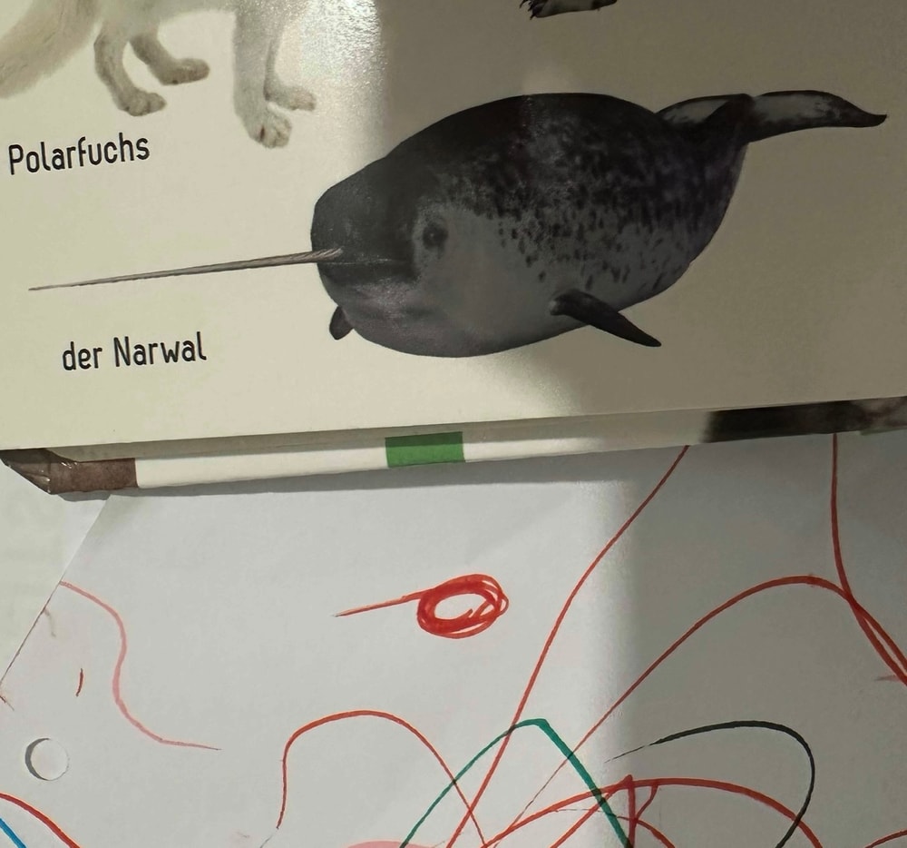 Попросил нарисовать божью коровку. Не успела я начать, как он выдернул лист у меня. Посмотрел, что получилось. Говорит: похоже на нарвала.