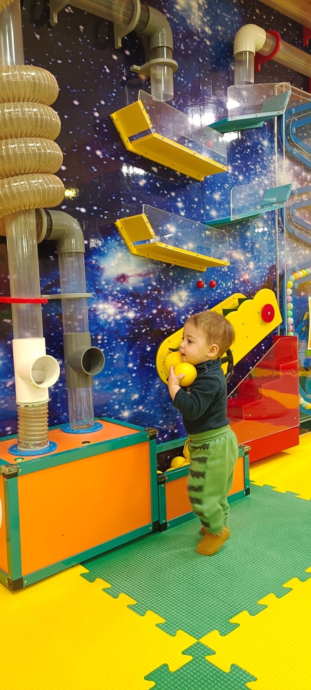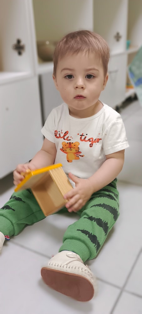Что ж нового? Научился забираться по лестнице на горку и в бассейне, но иногда спешит и пытается пропустить ступеньки. Любимое занятие ходить в магазин и возить маленькую детскую тележку. Если я прохожу мимо магазина, требует, чтоб зашли. Потерял интерес к горшку, не хочет даже немного посидеть... Зато появился интерес к взрослому унитазу, ну сажаю )