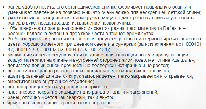 - ранец удобно носить, его ортопедическая спинка формирует правильную осанку и уменьшает давление на позвоночник, дышащие ткани, эргономичные лямки. Что очень важно для неокрепшей детской спины;