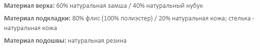 Материал верха-10% натуральная кожа / 20% натуральная замша / 70% натуральный нубук