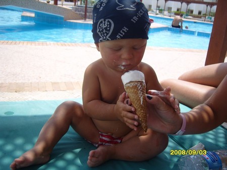 когда Валька дорвался до пляжа , то первые три дня он регулярно пробовал песок, пока не убедился , что он несъедобный и невкусный ( я конечно каждый раз пыталась все это дело у него изо рта высыпать ..но Валька проявлял чудеса техники и умудрялся незаметно запихнуть горсть песка пока никто не видит)
