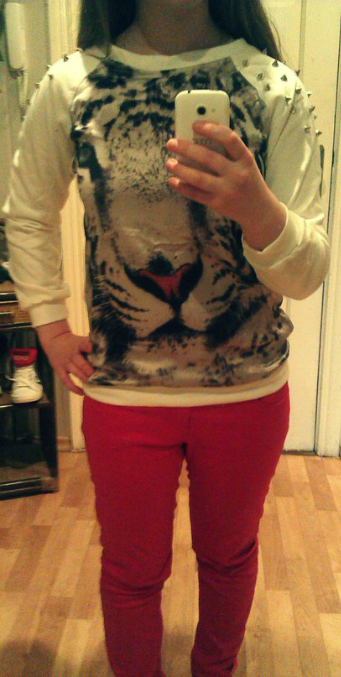 Очень клевые... На фото девочка ростом примерно 160 см, брала М.. Тигр из атласного материала, трикотаж хорошего качества.
