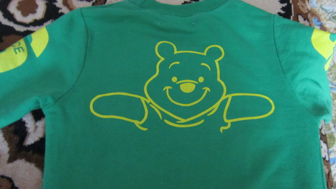 Тонковка "пух" - очень рада этой покупке!!! Винни прорезиновый, материал натуральны.После стирки(а стирала уже несколько раз) неполинял, и не растянулся, осталась как новенькая.Брала рост 90 на сына... носим сейчас, как мне кажется не маломерит...