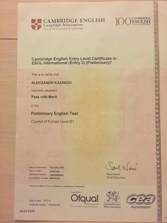 Также имею успешный опыт в подготовке к международным экзаменам Flyers, KET, PET, FCE, CAE, а также ОГЭ и ЕГЭ. (Мои ученики не получают отметку ниже "pass with rewrad") Считаю целесообразным и важным для родителей всех детей, которые изучают англ. яз., чтобы их дети сдавали экзамены на международные сертификаты, т.к. они показывают реальный уровень владения языком и помогают оценить работу вашего репетитора и, конечно, ребенка.