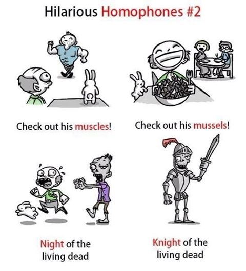 meat - meet (мясо - встретить): meat and potatoes; to meet with friends