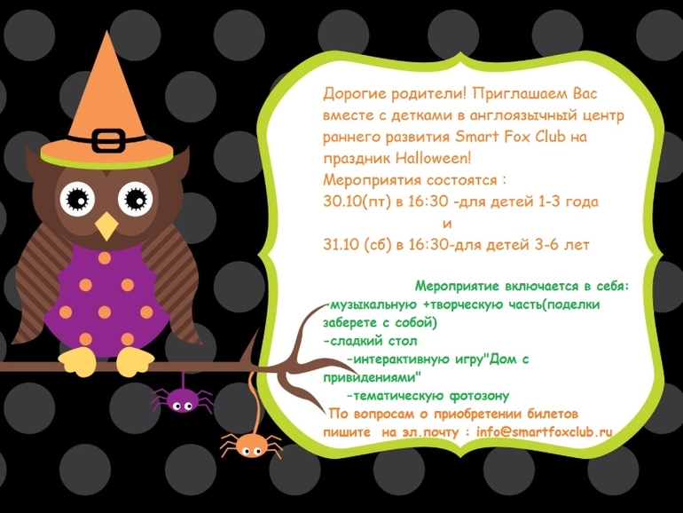 Приглашаем на англоязычный HALLOWEEN малышей с родителями!