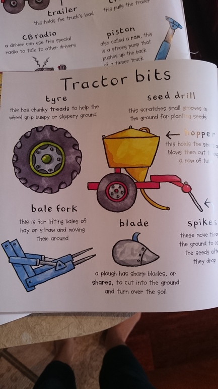 Все началось с того, что я нашла на просторах интернета версию для печати и аудио приложение…послушала и влюбилась, распечатала книжку и в нее влюбился мой ребенок. На книжку ушло сразу пол картриджа и прослужила она недолго ((( а ребенок мой очень- очень любит тракторы и всякие большие машины. И я решила, что дешевле выйдет купить книги, чем печатать.