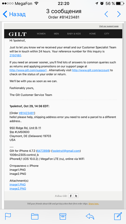 Сделайте перевод текста / задание за меняЗаказала с американского сайта не на тот адрес. (((( написала им чтоб перенаправили ...... а ответ прчесть не могу толком