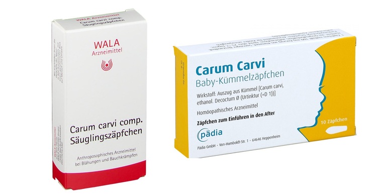 Когда малышу совсем невмоготу, то можно поставить свечи с тмином ("carum carvi"). Сначала я купила «Carum carvi Wala», которые согласно инструкции только от трёх месяцев жизни, поскольку могут спровоцировать проблемы с дыханием (из-за экстракта белладонны). Но я решила поставить дочке уже в 2.5 месяца. Возможно я себя накрутила, но мне показалось, будто бы она в течение 10 минут немного хрипеть и задыхаться стала. После этого купила свечи "carum carvi " от Pädia, там чистый тмин в составе. Эффект мне показался меньшим.