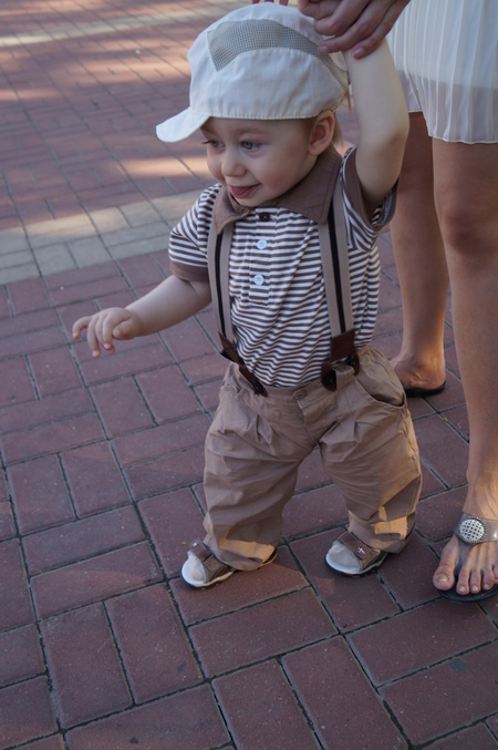 А этот костюмчик брала на 90. Немного великоват, особенно футболка-длинновата, зато штанишки по обхвату еле зестегнулись (хотя у нас даже животика не наблюдается).