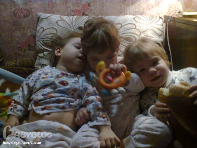Живет эта семья в Волгограде. Мамочку (ЖЕНЩИНУ-ГЕРОИНЮ) зовут Женя. Она еще очень молода. А три!!! ее солнышка зовут Даша, Дина и Кристина. Девочки-тройняшки. И все три особенные (ДЦП). Отдельную "благодарность" следует выразить врачам! Их воля была...