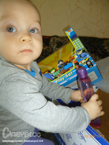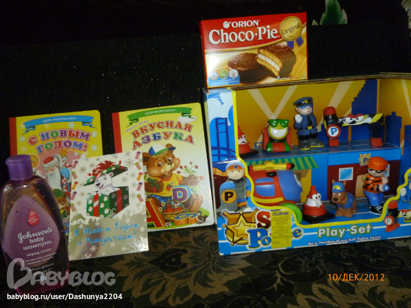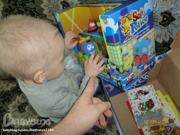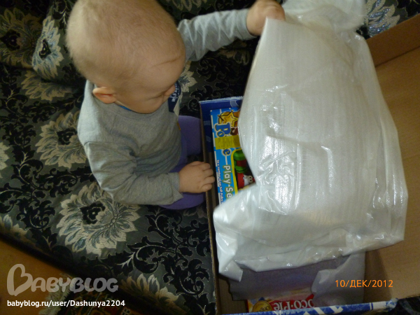 сбегала я на почту! слава Богу,мой адрес проживания совпадает с адресом прописки,потому что если бы в паспорте не стоял такой же адрес как и в извещении,не получили бы мы посылочку. Вера указала неправильно мою фамилию.. но это все пустяки по сравнению с тем,как Егорка обрадовался подаркам!!!подгонял нас с папой,чтоб быстрее открыли коробку! и вот что там было!!