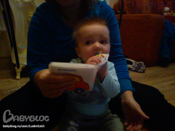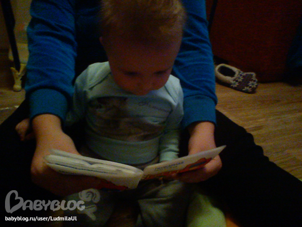 Это мы с Колей пытаемся рассматривать книжку-непромокашку.