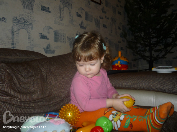 , она их все пыталась попробовать)))). Кстати, на заднем плане уже видно нашу елочку! Это второе чудо за день!!)))))