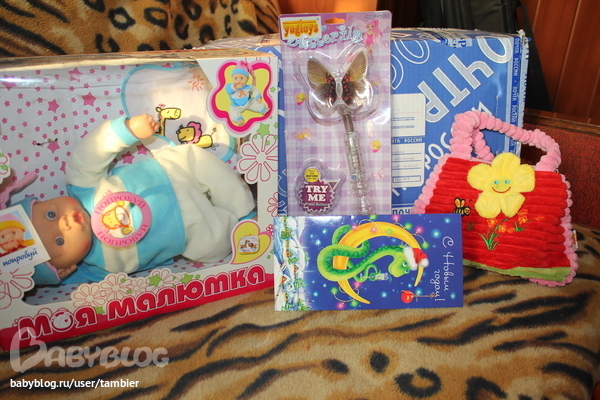 мы пошли в магазин, я как мама мальчика, н езнаю, что можно подарить девочке кроме кукол, но Слава Богу все пришло само собой) я вспомнила себя в детстве иподумала, что от сумочки я бы не отказалась))) А идею варежек подсказал наш папа, мы на днях Эндрю тоже купили и я столько сн ими носилась, что на вопрос "что подарить малышке", папа тут же выпалил "Варежки!")))))