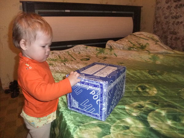 Рано с утра я побежала на почту,оставив сынку с моей бабушкой.Пришла домой он сразу схватил посылку и бегом в комнату..