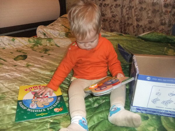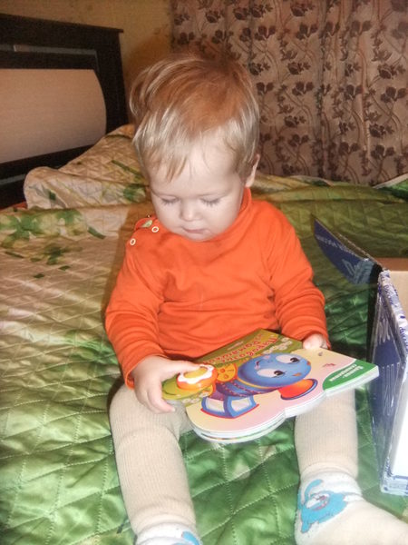Но книжка про поровозик ему понравилась больше всего.Пока я здесь пишу.он слушает песенку уже наверное сотый раз.Я ее уже наизусть выучила)