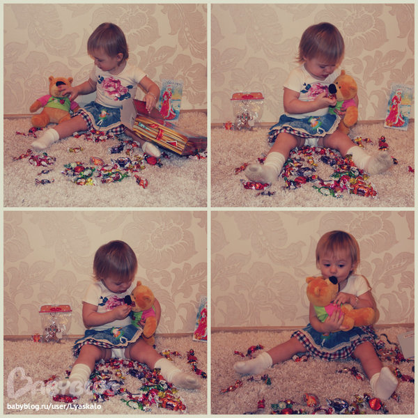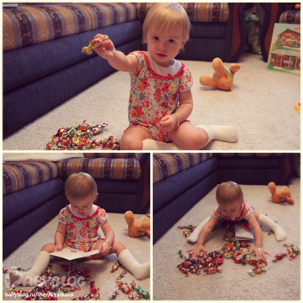 А тут Алиса нашла кофеееты)))) Мы их пока еще не кушаем, но как же с ними здорово играть!!! ;)