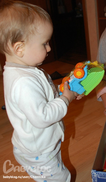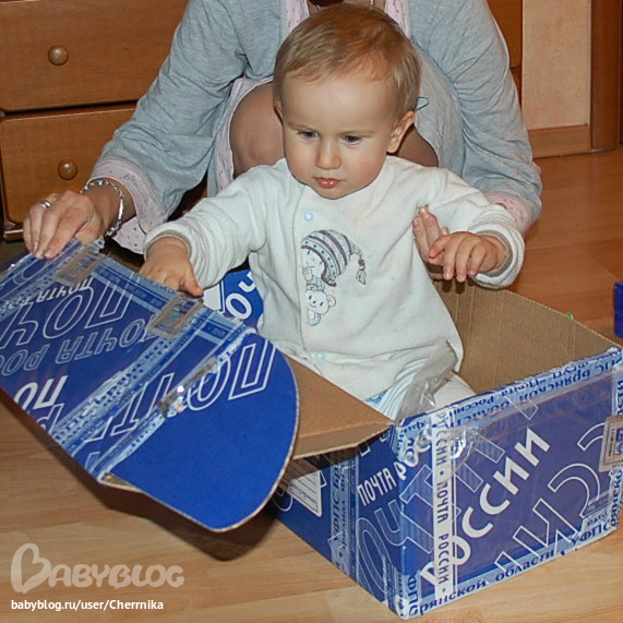 Безуловно и сама коробка привлекла внимание Сережи, он с удовольсвием играл в "посылку", усаживался в коробку, а я его там закрывала :)