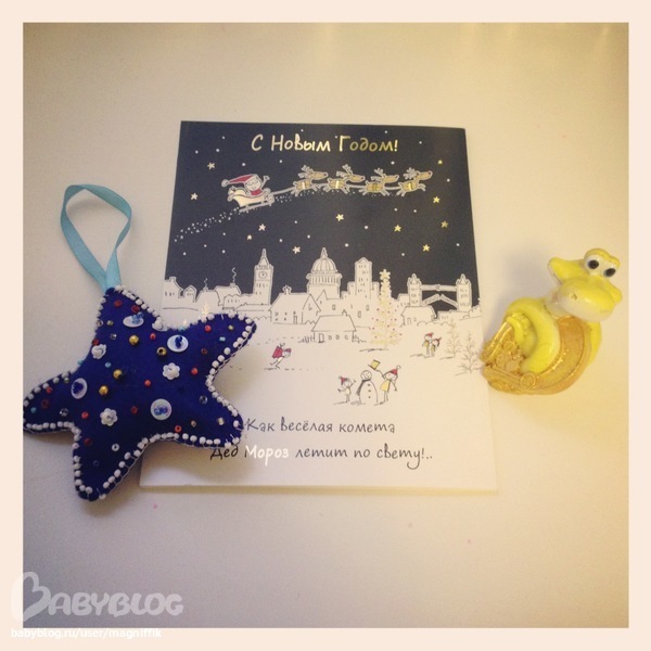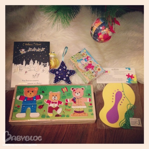 Наша Фея угадала с подарком, на игру с медведями я давно положила глаз и хотела ее купить, кубиков у нас мало и таких маленьких нет, Жене они очень понравились, строил из них башни, ну, а hand-made подарки я обожаю!!! Звездочка заняла почетное место на нашей елке!