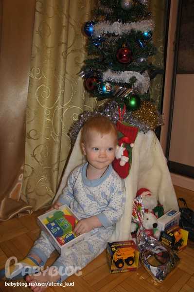 ,что Дед Мороз нам уже и подарочки принес за то что мы елочку поставили и как только Сева встал потащил того смотреть)))
