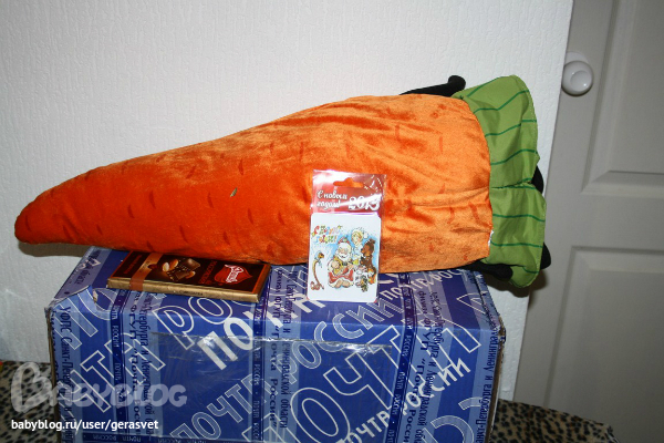 а вот это.... ЭТО... МОРКОВКА!!!!!!!!!!! для моего Зайчика-мальчика))))))))))))) Леночка, не зря мы с тобой глубокой ночью переписываемся))) ичто интересно - мы такую морковку хотели в икее купить, но не для Андрюши, мы и не подумали, что зайцу нужна морковка)) но не было такой морковины в местной икее!!!!!!!!!!!! нам навязывали капусту-брокколи, но папа сказал, что с брокколи спать неудобно) и забыли мы об этой морковке, но мысль настолкьо материальна. что......... она прилетела к нам из Питера)))))))))))))))))))))