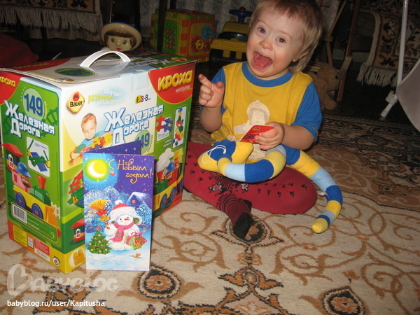 Катя hopefull В посылке нас ждала настоящая железная дорога!!! С поездом,машиной,домиками,деревьями и дорожными знаками-вообщем маме пришлось попотеть,чтоб собрать))) Ну и символ года - смешной Змей, который сейчас охраняет нашу елочку.